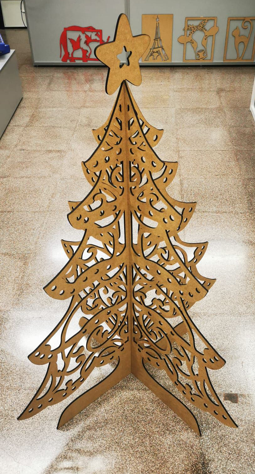 Árbol de Navidad en madera MDF. La decoración navideña en madera es una de las tendencias de los últimos años.
