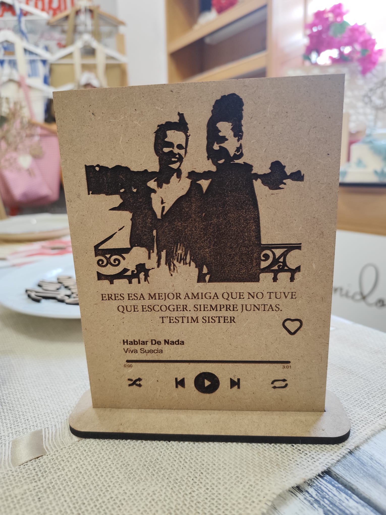 Un marco de fotos ideal para regalar con la canción que os une tanto a tu persona favorita y a ti. Envíanos el link de la canción de Spotify y nosotros hacemos la magia.