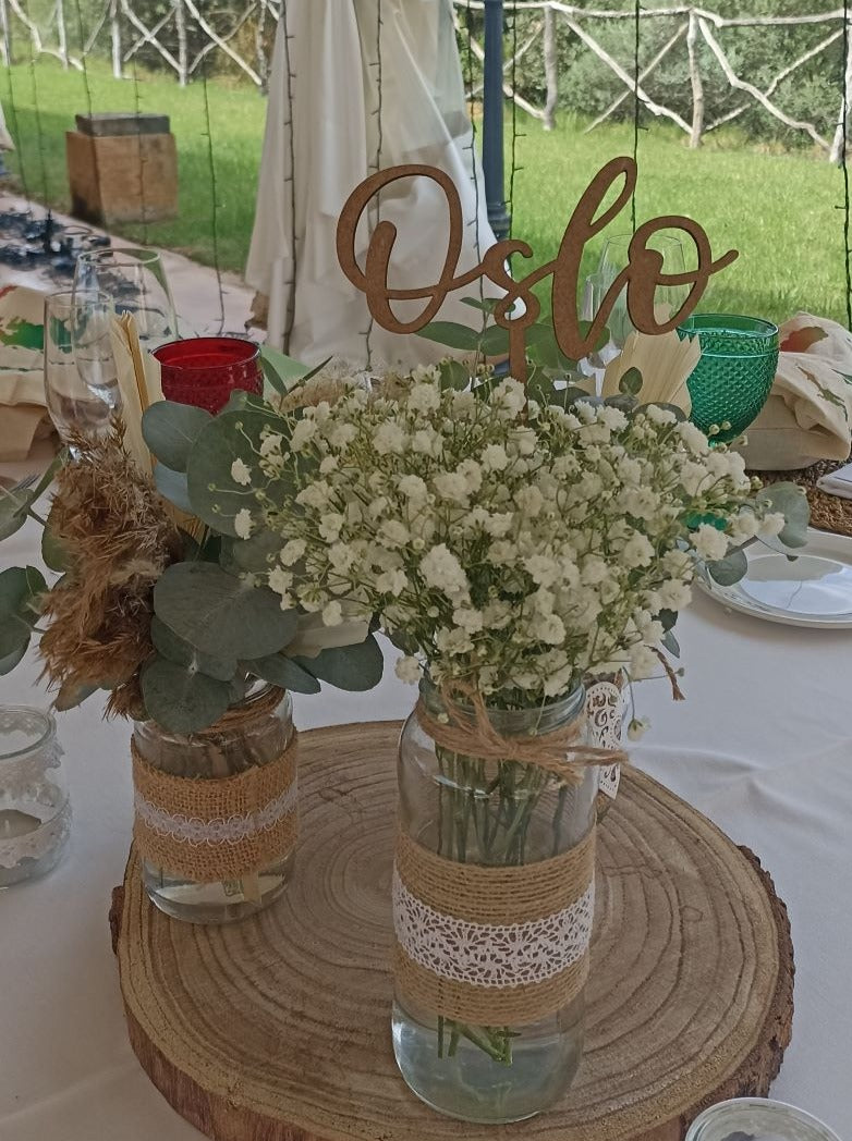 Nombre de madera DM con palo estilo topper, para identificar las mesas. Cantidad mínima 10 und.